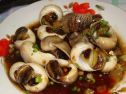 Một cái kỳ quan nữa là ốc gạo. Món này, ngược hẳn với mấy thứ cầu kỳ xào nướng nhiều gia vị vừa kể, chỉ cần hấp lên chấm nước mắm. Nhưng trong cái giản dị tột cùng ấy lại chứa đựng những thứ cầu kỳ hết mức, mà là cái cầu kỳ không phô trương.