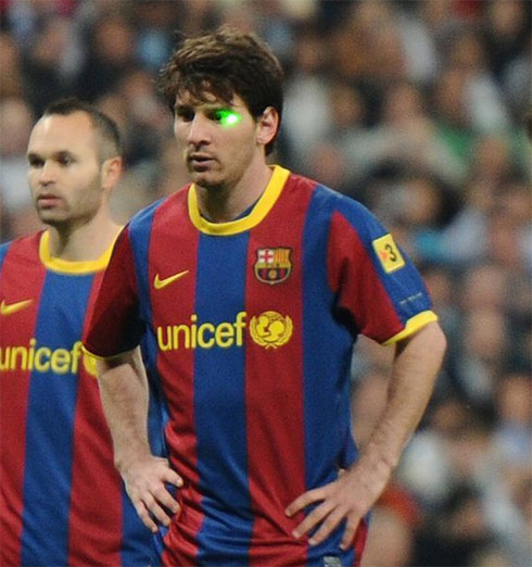 Guardiola và Messi trở thành nạn nhân của đèn laser