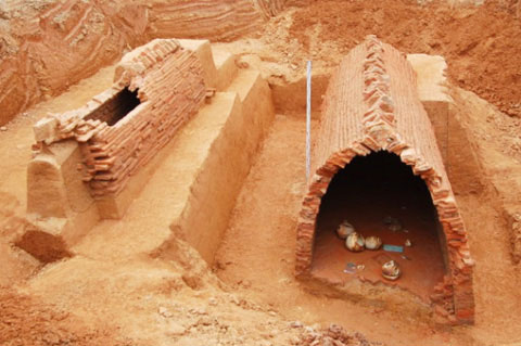 Hai ngôi mộ cổ thời Lục Triều mới phát hiện được ở Đông Ngạc (Hà Nội).