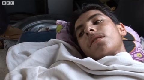 Umar Fidai trên giường bệnh. (Ảnh: BBC Video)
