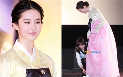 Lưu Diệc Phi "toát mồ hôi hột" khi mặc Hanbok