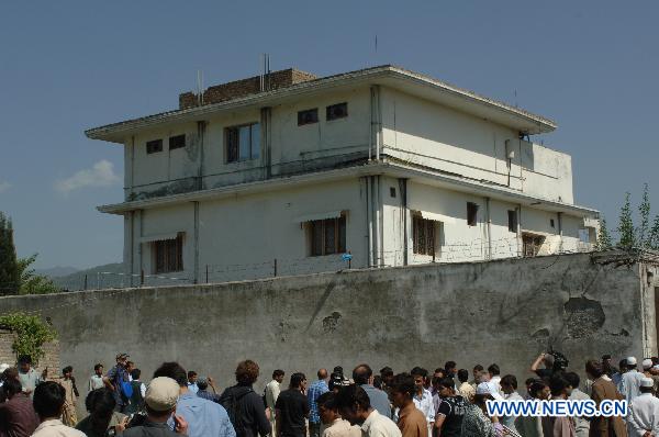 Khu nhà ở Pakistan nơi Bin Laden bị giết. Các phóng viên đă được phép tiếp cận bức tường bao quanh