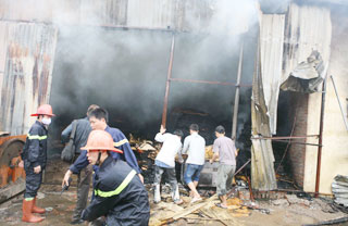 Cháy nhà kho hơn 2 giờ, hàng tỉ đồng ra tro