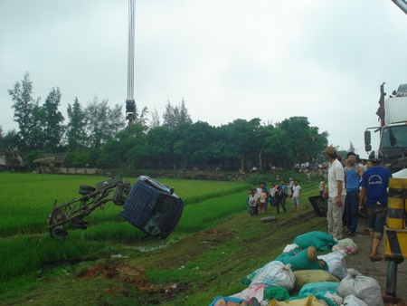 Xe tải gãy đôi sau cú đâm mạnh, 2 người trọng thương