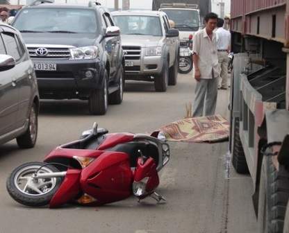 Cú đâm mạnh và bất ngờ đă hất tung đôi hai người ngồi trên xe máy xuống đường. Cô gái bị kéo lê chừng 20m, bánh xe chèn qua đầu, tử vong tại chỗ. Nam thanh niên điều khiển xe máy bị kéo xa hơn cô gái khoảng 30m và cũng bị xe trộn nghiền nát. Theo cơ quan chức năng, nạn nhân đang là sinh viên ở Hà Nội.