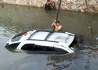Tránh xe ngược chiều, Santa Fe rơi xuống cống