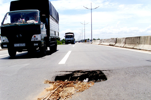 Ổ gà, lún nứt trên cao tốc TP HCM - Trung Lương