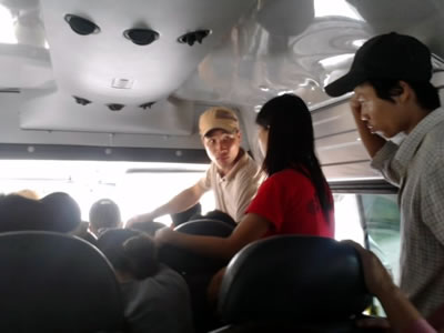| Cảnh hành khách ngồi, đứng chen chúc, ngột ngạt trên những chuyến xe nhồi.