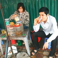 Chủ nhân của hai tấm bằng đỏ này đang phải mưu sinh bằng nghề bị một số người coi là “tầm thường” nhất trong xă hội: Bán trà đá!
