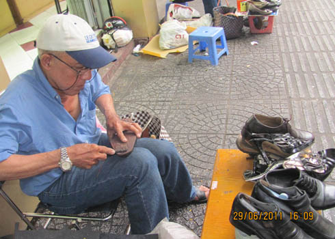 Ông cụ hơn 30 năm sửa giày ở vỉa hè Sài Gòn