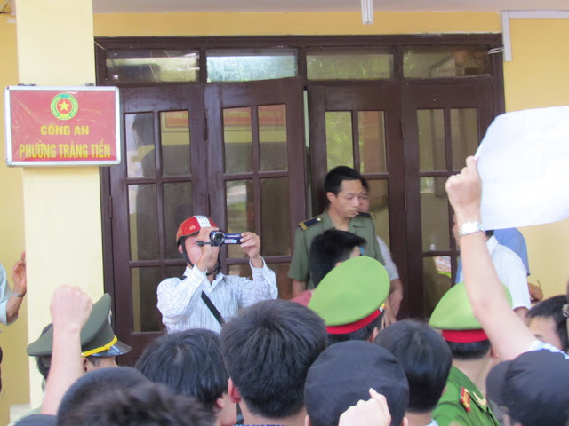 Cán bộ Công an phường Tràng Tiền gọi loa yêu cầu... giải tán "về nghỉ cho đỡ nắng nôi"