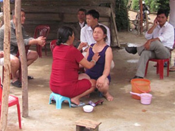 "Phật" đang chữa vô sinh cho một phụ nữ tại xã Hưng Trạch bằng nước phép