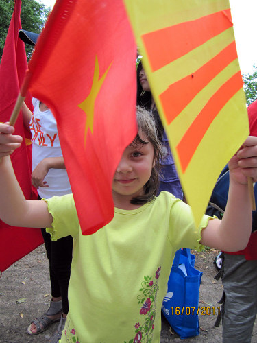 Các cháu thiếu nhi rất háo hức lần đầu tiên được đi biểu tình chống giặc