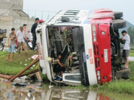 Xe khách lao xuống ruộng, hàng chục người bị thương