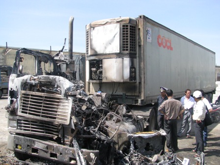 Xe container chở sữa chua bốc cháy dữ dội