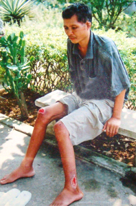 -Nó cũng dùng búa đánh liên tục làm vỡ đầu gối, hai ống chân và găy tám xương sườn. Sau đó chúng mới dùng dao cắt đứt gân chân.