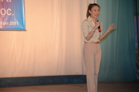 Mỹ Tâm về thăm trường xưa và tặng đàn