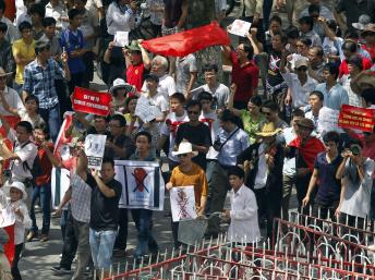 Biểu t́nh tại Hà Nội ngày 14/8/2011chống Trung Quốc gây hấn./REUTERS/Le Nam Thang