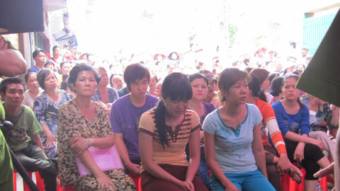 Phiên ṭa lưu động xét xử bị cáo Trương Văn Trung (33 tuổi, TP.HCM) phạm tội “giết người” diễn ra tại một con hẻm nhỏ trên đường Bàn Cờ (phường 3, quận 3) đông người qua lại. Mặc cái nắng gắt gỏng cứ rọi xuống, nhiều người dân để đầu trần chen chân đứng đó theo dơi phiên ṭa.