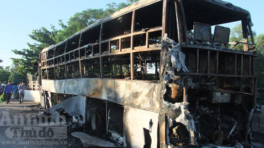 Xe khách Hoàng Long bốc cháy đùng đùng trên QL1A