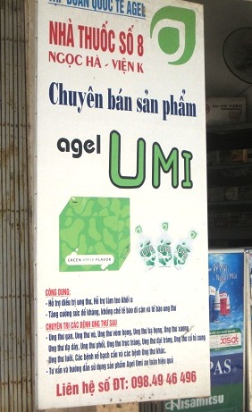 TPCN Agel Umi được cho là có khả năng chữa bệnh ung thư ṿm họng nên anh Phong không cần đăn đo, mua cho vợ ngay lập tức. “Cô bán hàng nói với tôi là sử dụng TPCN này, kết hợp với thuốc kháng sinh có thể khống chế tế bào ung thư, tiêu diệt vi khuẩn và sẽ khỏi bệnh. Nghe vậy tôi rất yên tâm nên mua về cho vợ tôi sử dụng ngay lập tức.”