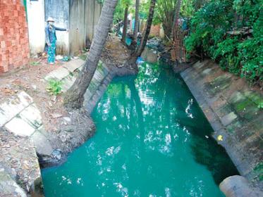Kênh Tham Lương đổi màu xanh vì nước thải