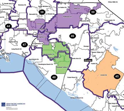 Báo Orange County Register trích dẫn lời bà Joanna Lee, phân tích gia nghiên cứu hàng đầu của Trung Tâm Pháp Lư Người Mỹ Gốc Á Châu Thái B́nh Dương (APALC), nói rằng những sự chia tách trong khu vực Little Saigon là “những sự chia tách tệ hại nhất trong tiểu bang, đối với cộng đồng Người Mỹ Gốc Á Châu Thái B́nh Dương”. Tuy nhiên, những người Mỹ gốc Á tại Quận Cam nói chung có thể gặp khó khăn trong việc bầu lên những người đại diện cho họ tại Quốc Hội, Hạ Viện và Thượng Viện Tiểu Bang, trong những kỳ bầu cử sắp tới.