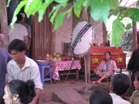 Vòng hoa trắng bên quan tài em Đàm Thị Hiền