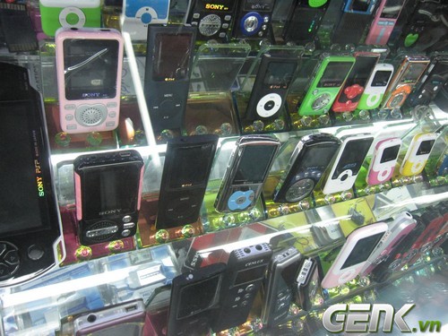 Không kém cạnh các ki-ốt điện thoại di động, lượng gian hàng thiết bị nghe nh́n nhiều không đếm xuể. Xuất hiện nhiều nhất tại các gian hàng này là máy chơi nhạc di động Sony, iPod và Creative. Tham khảo một chiếc iPod Mini, chúng tôi không khỏi giật ḿnh trước mức giá 320.000 đồng. Các máy chơi nhạc di động khác cũng cùng chung mức giá, hiếm thấy chiếc nào đặt giá hơn 1 triệu đồng.