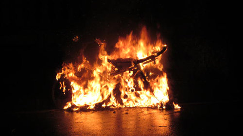 Xe máy bốc cháy trên đường phố