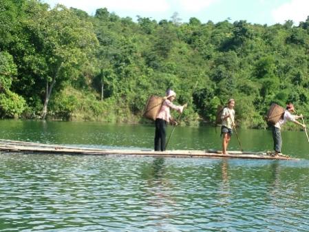 Dân bản C̣ Phạt-Môn Sơn vượt sông giăng vào rừng t́m mật ong rừng.