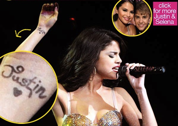 Selena Gomez "xăm" tên Justin Bieber lên tay