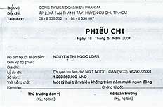 Nhận được khoản tiền này ở tài khoản, phía bộ phận kế toán BV Pharma thông báo, họ được lệnh phải chuyển số tiền này vào tài khoản của bà Nguyễn Thị Ngọc Loan, được mở tại ngân hàng Á Châu (ACB) ở TPHCM.
