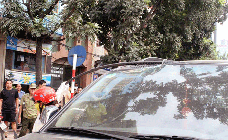 Sắt văng xiên thủng Toyota Fortuner đang chạy