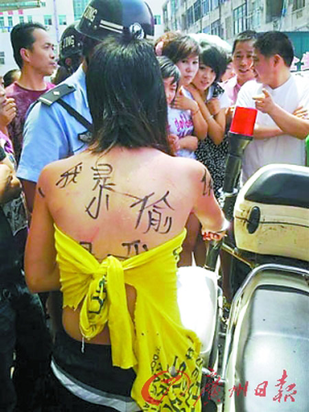 Nữ đạo chích bị lột áo, viết chữ đầy người