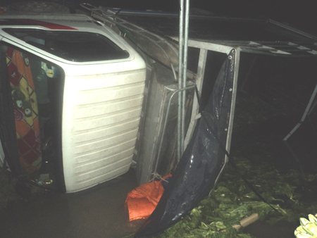 Xe tải nổ lốp, lật chỏng chơ bên đường