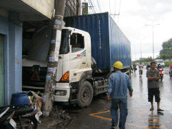 Container bỗng dưng nổ, tông gãy trụ điện, sập nhà dân