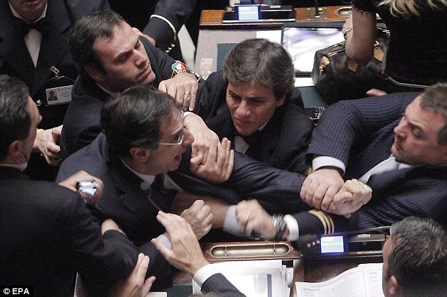 Nghị sĩ Ý đấm nhau trong phiên họp Quốc hội