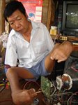 Ông Út đang tỉ mỉ hàn lại những mạch điện chi chít
