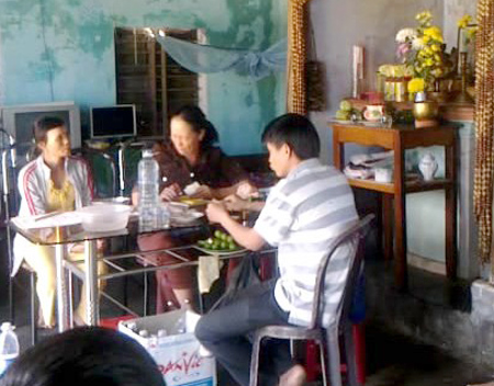 Một cụ già khác, khoảng 80 tuổi, uể oải thắp hương, khấn vái rồi lên ngồi cạnh "thánh cô" để được bắt bệnh. Sau một lúc cầm tay bắt mạch, "thánh cô" cũng đưa cho cụ một ly nước lã. Uống ly nước xong, cụ có biểu hiện choáng váng, chân tay run lẩy bẩy, miệng trào bọt. Lúc đó, tất cả mọi người đều hoảng sợ và "thánh cô" nhanh miệng nói với hai thanh niên phụ việc: "Các con mau mang xe ra chở người này về, người này mệt quá rồi cần phải đi "trần" (đi bệnh viện - PV). Sau khi đưa cụ già đi, "thánh cô" lại bình thản bốc thuốc, khám bệnh cho những người còn lại.