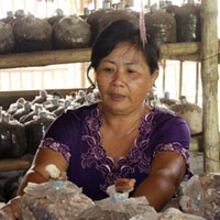 Gần đây, bà học thêm nuôi nấm linh chi. Các con thiểu năng, khuyết tật hè nhau lấy cho heo ăn, rồi... đổ cả xuống ao, kể cả chọc thủng bao “tìm con lợn nấm đẻ từ đâu”. Thế rồi, thấy mẹ buồn, ngồi khóc bên nhà nấm bị phá tan hoang, đám con dại mê lại đâm tỉnh. Chúng vỗ về bà: “Các don xin dỗi mẹ da, mẹ dà...”. Rồi chúng tẩn mẩn phụ bà trồng lại. Hình như có việc động não, động tay làm chúng đỡ ốm đau và cũng tỉnh người. Về sau, nhiều đứa còn biết trồng rau, cho lợn ăn phụ mẹ, dù thi thoảng lại bốc trộm thức ăn lợn bỏ vào miệng mình.