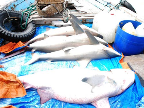 Cứ quăng lưới là 'dính' cá mập, thu tiền triệu