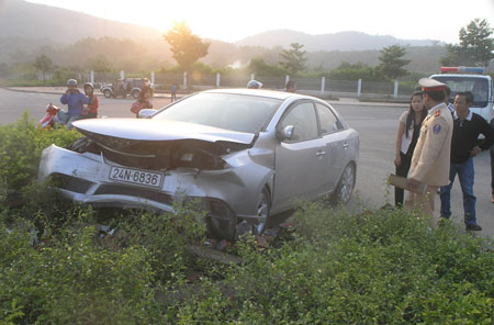 Xe du lịch bẹp rúm đầu vì lao vào dải phân cách