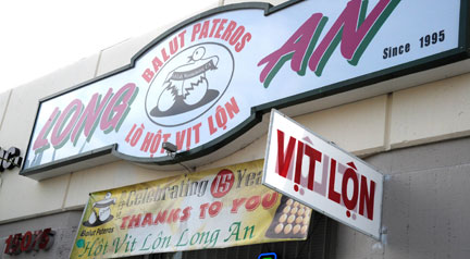 Bảng hiệu Hột Vịt Lộn Long An nổi tiếng phố Bolsa - ảnh: Thomas Trương/Viễn Đông