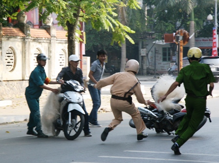 C̣n anh Nguyễn Văn Hoàng sống tại đường Nguyễn Trăi chia sẻ: “Nhiều hôm thấy vui vui tôi cũng đứng xem các đồng chí tung lưới bắt xe vi phạm mà cứ như đi đánh cá thật. Tung lưới th́ sẽ không phải lùa theo gây tai nạn, v́ khi tung trúng xe sẽ chạy chậm lại và các đồng chí cảnh sát sẽ dễ dàng tóm được. Nhưng cũng rất nguy hiểm, v́ thấy nhiều xe máy đang chạy với tốc độ cao mà tung không khéo là cả xe và người bổ nháo nhào liền”.