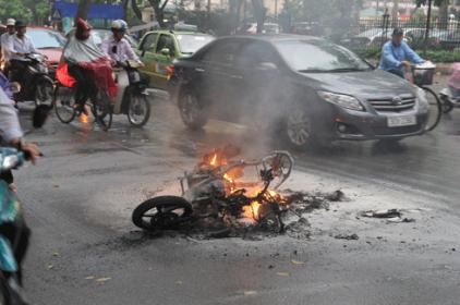 Xe máy phát nổ, hai mẹ con bị thương nặng