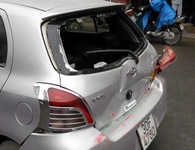 Tai nạn liên hoàn, xe buýt “cắn” nát đuôi xe Yaris