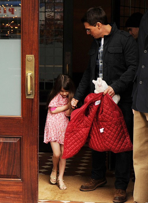 Suri hốt hoảng gục đầu vào bố Tom vì sợ phóng viên
