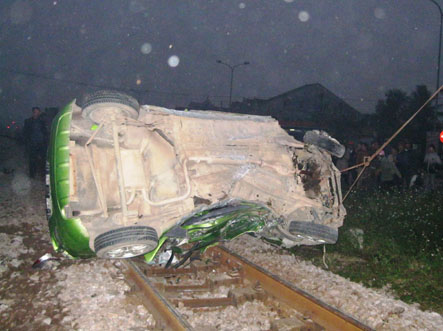 Xế hộp băng qua đường tàu, bị tàu cán nát