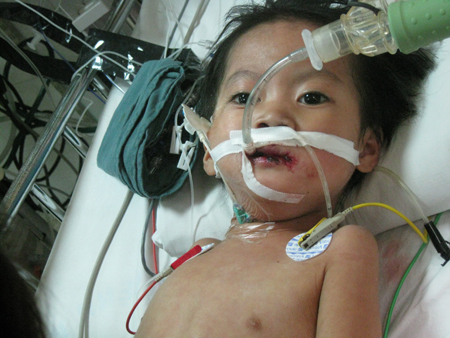 Cơ thể bé bỏng của em giờ đây hoàn toàn phải phụ thuộc vào các máy trợ thở và trợ tim, đôi mắt to đen đờ đẫn không còn nhận biết được gì và đôi môi khô lúc nào cũng rơm rớm máu. Vừa gào khóc kêu tên con, chị Lan vừa bộc bạch “Ở nhà lúc nào con cũng gọi mẹ Lan của con, mẹ Lan của con ơi…thế mà bây giờ tôi đứng đây gọi mà con có biết gì đâu”